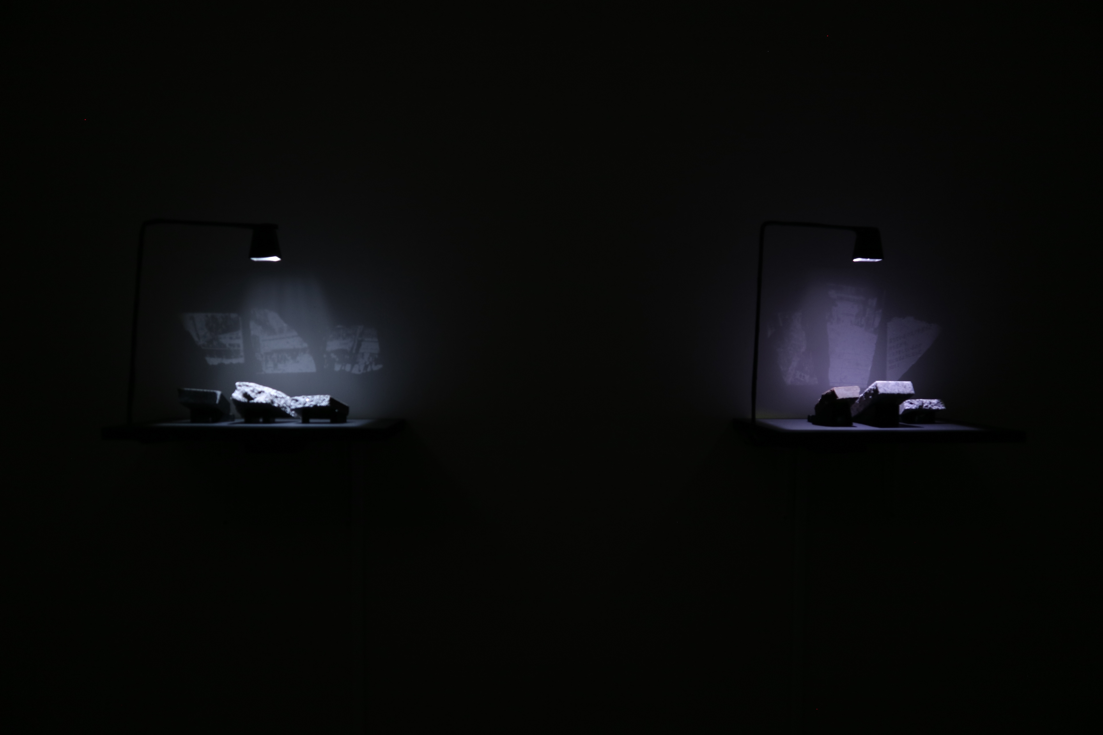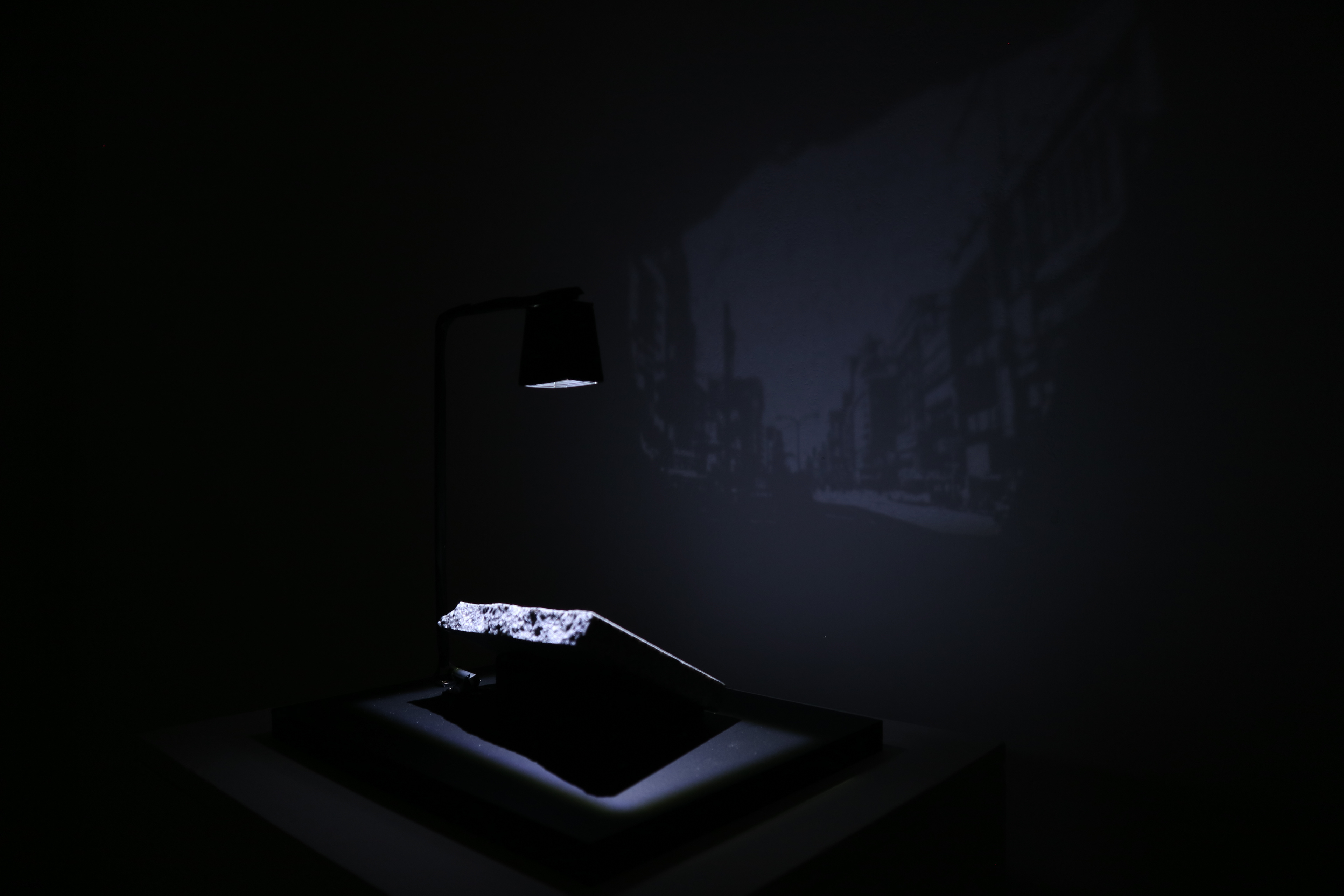 もしもそんな時代が来た時においても、私たちが現代で目にしている図像データや投影方法の名残を留め、再生する手段として、本作品では半永久的に残り続けるような記録媒体として石に着目し、光があれば投影することが可能な本手法に至った。これまで現存してきた石板などと同じように、数千年先の未来にも残りうる可能性を持つ記録媒体として機能するメディア装置である。
